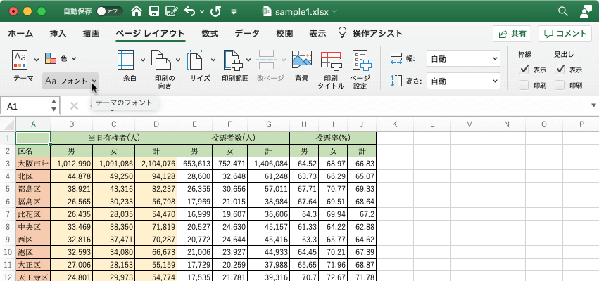 シートとブックを書式設定する | シートとブックの書式設定