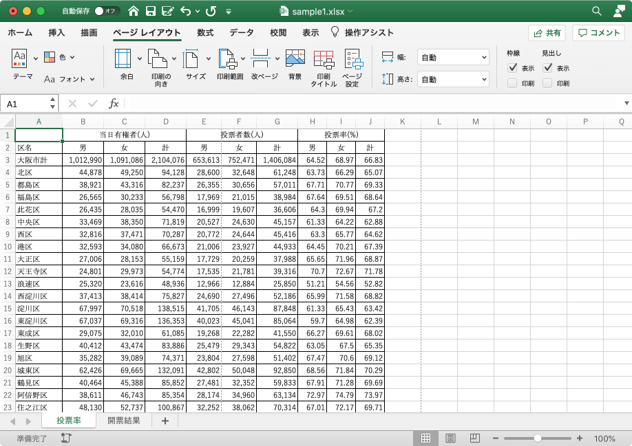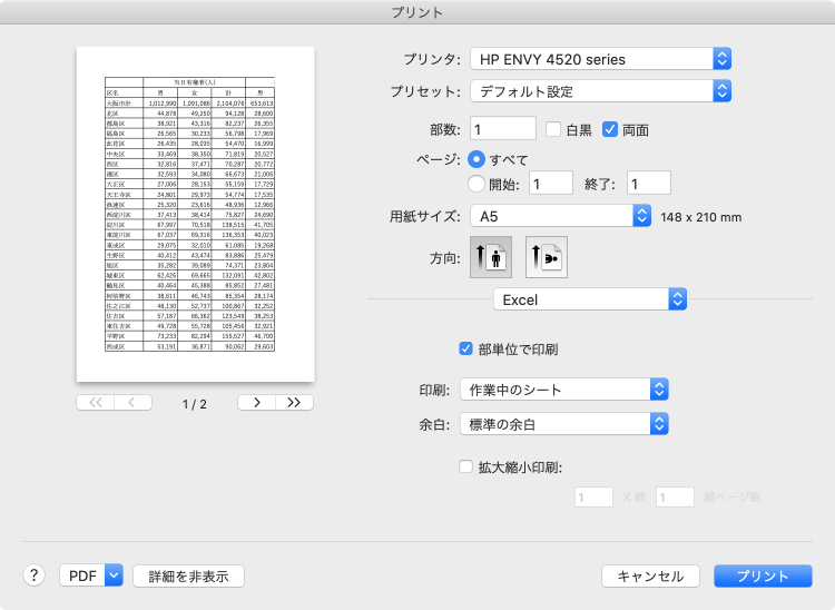 シートとブックを書式設定する | ページ設定の変更