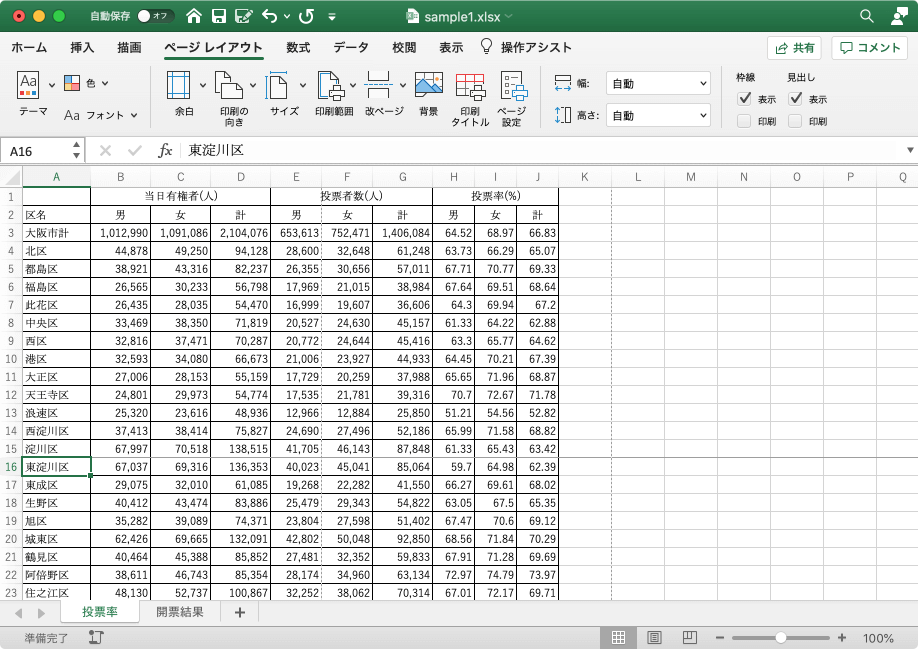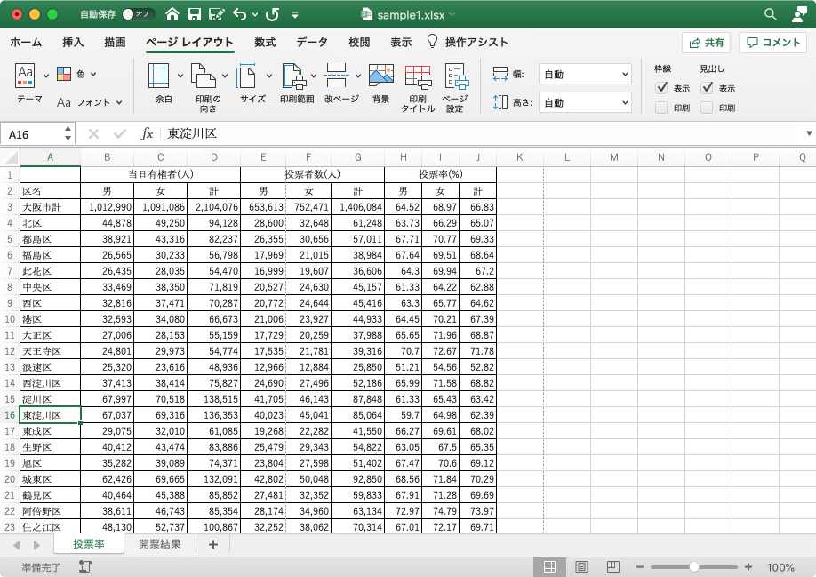 シートとブックを書式設定する | ページ設定の変更