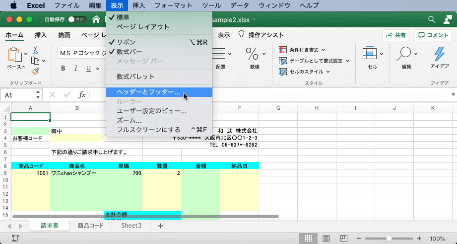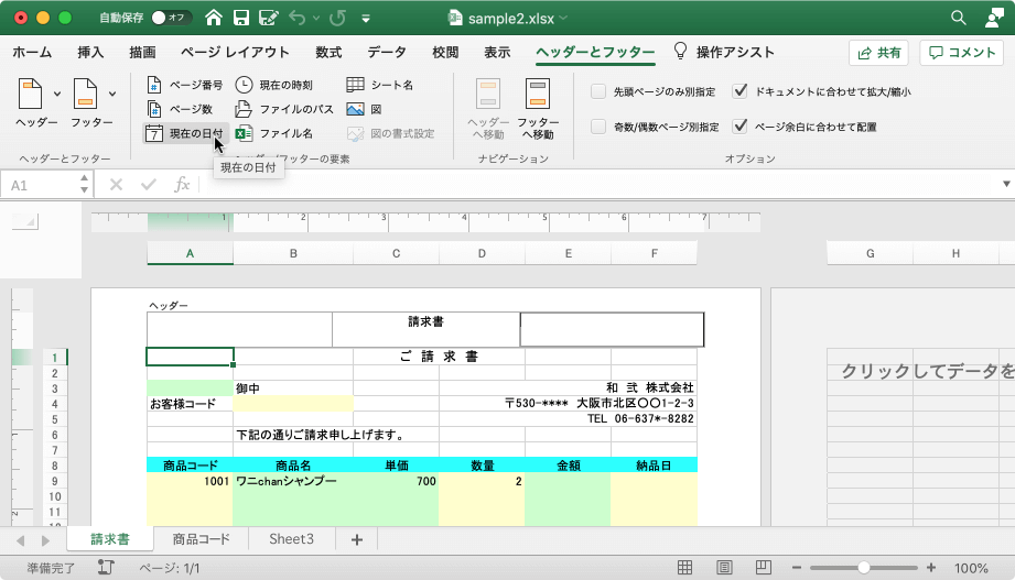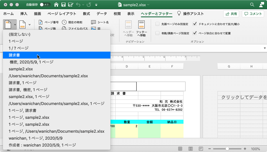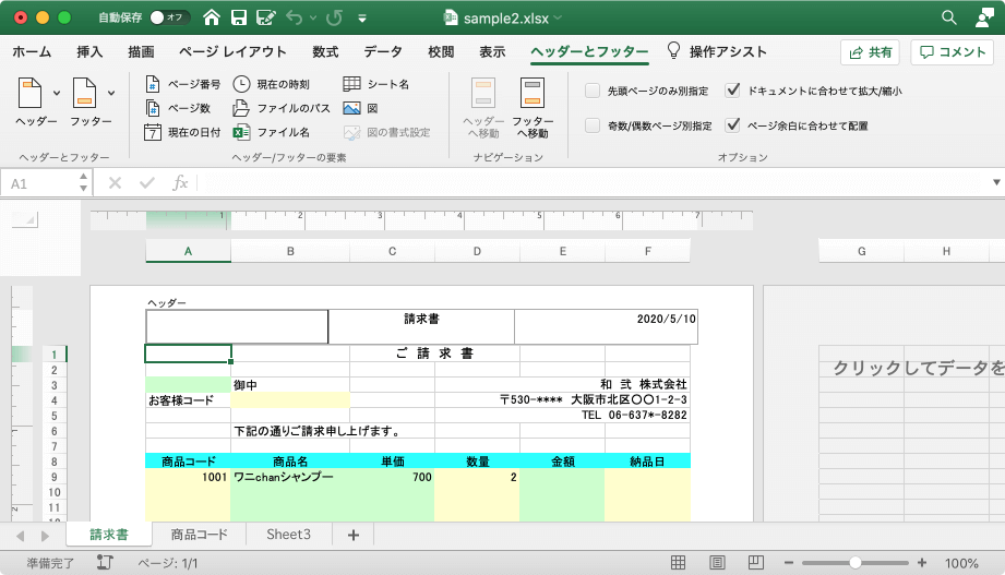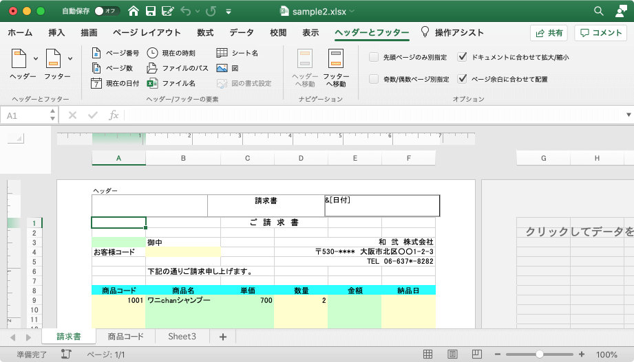 シートとブックを書式設定する | ヘッダーとフッターのカスタマイズ