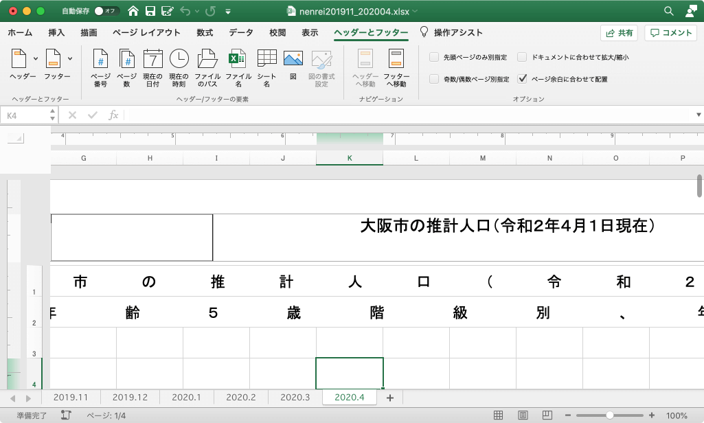 シートとブックを書式設定する | ヘッダーとフッターのカスタマイズ