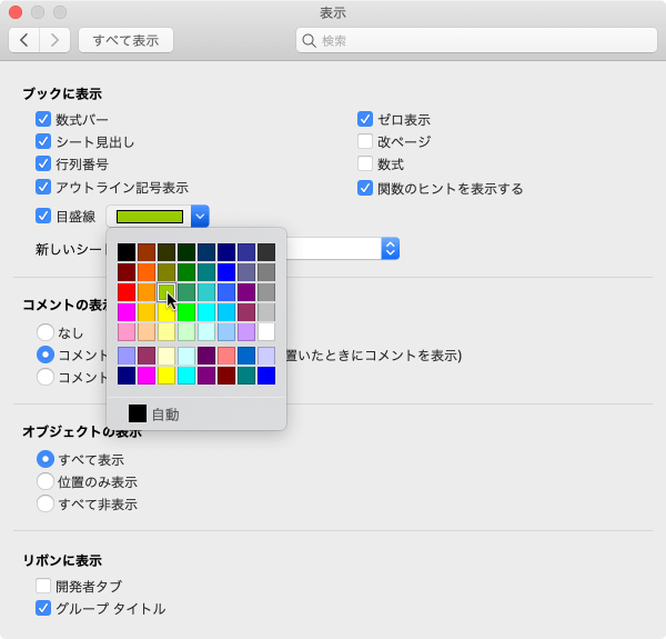 オプションとビューをカスタマイズする | ワークシートやブックの表示