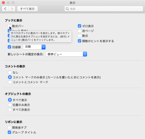 オプションとビューをカスタマイズする | ワークシートやブックの表示