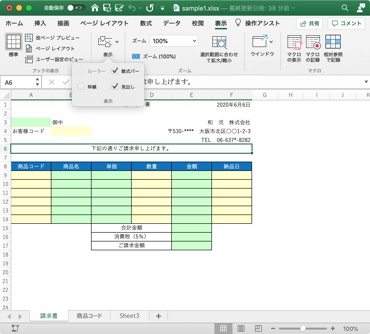 オプションとビューをカスタマイズする | ワークシートやブックの表示
