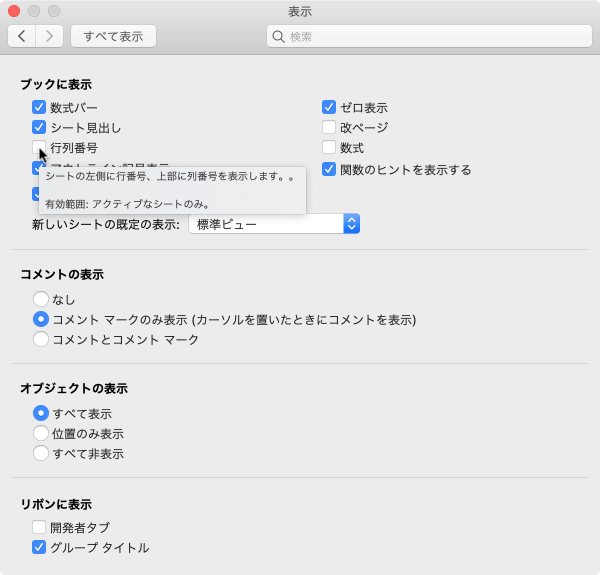 オプションとビューをカスタマイズする | ワークシートやブックの表示