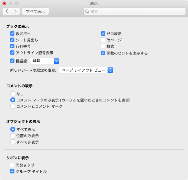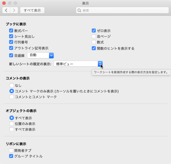 オプションとビューをカスタマイズする | ワークシートやブックの表示