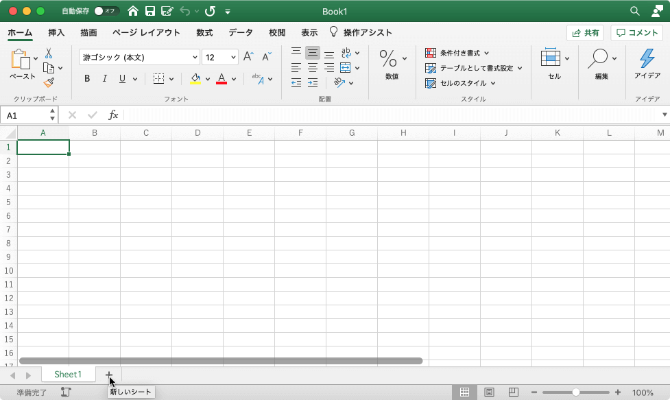 - ページレイアウトビューで新しいシートが挿入されました。