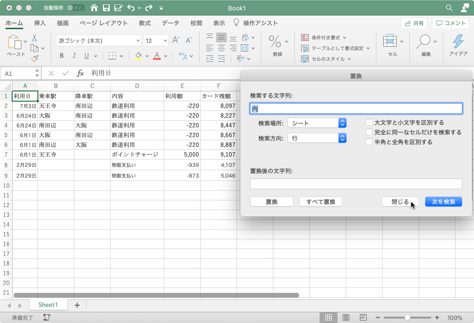 - [置換]ウィンドウの[閉じる]ボタンをクリックします。