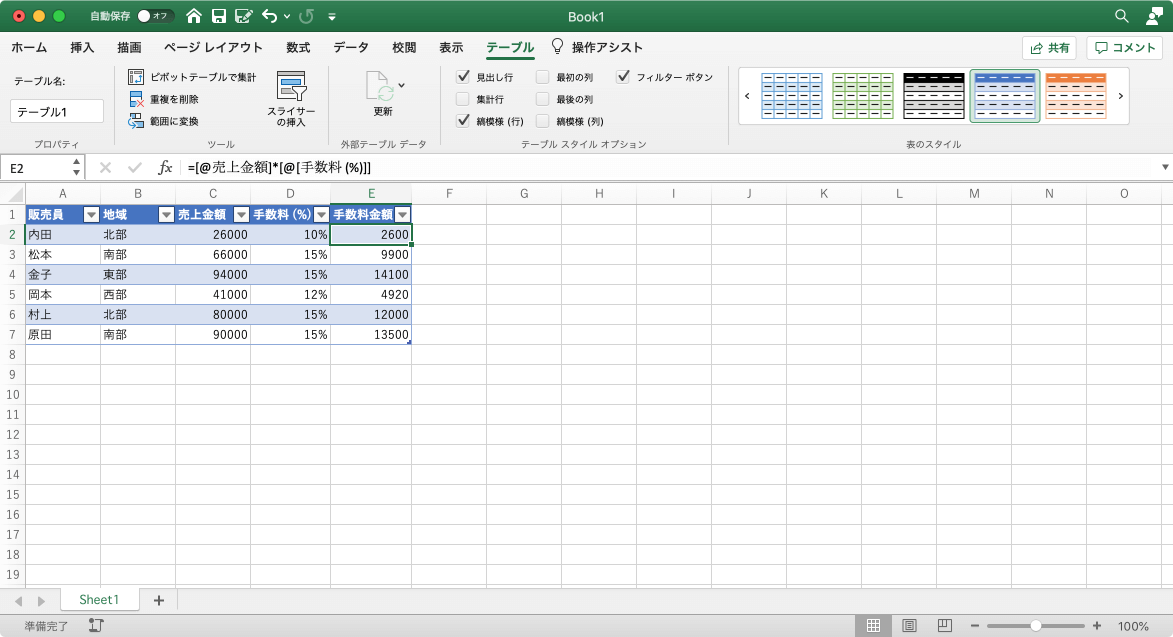 テーブルを作成し書式設定する