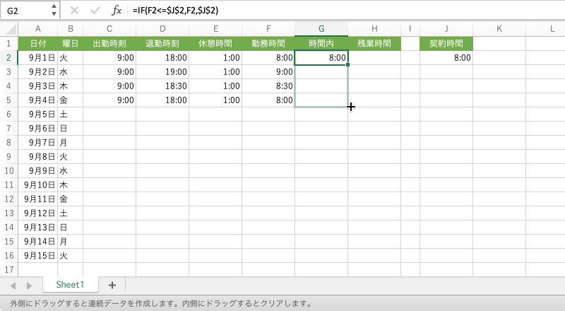 下方向に数式コピーします。