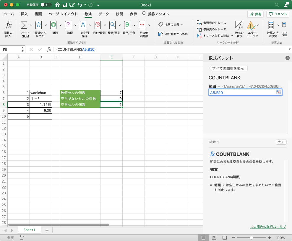 - 空白セルの個数が求められました。