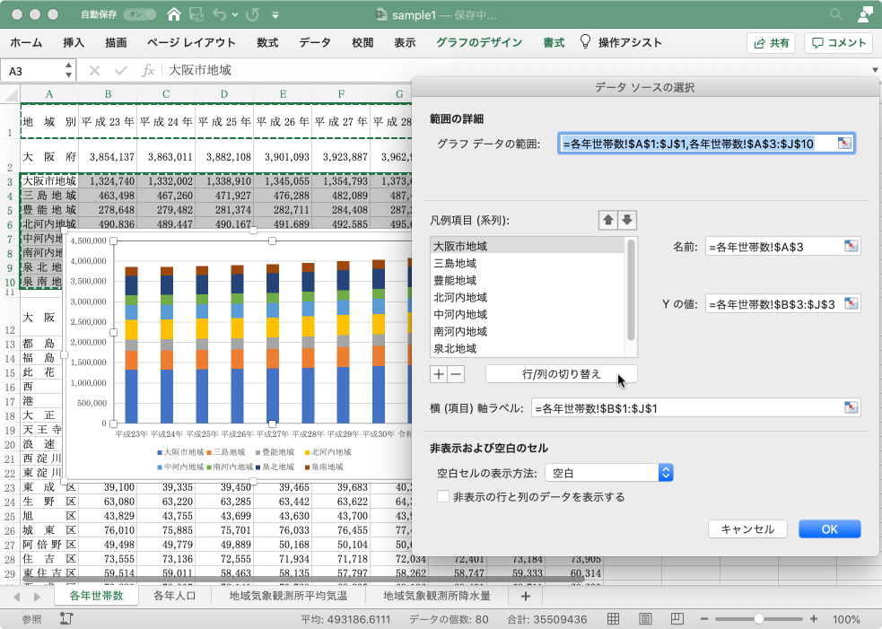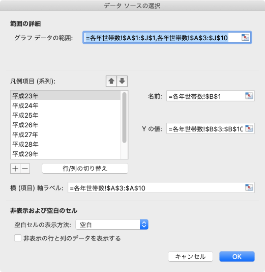 - ソースデータの行と列が切り替えられました。