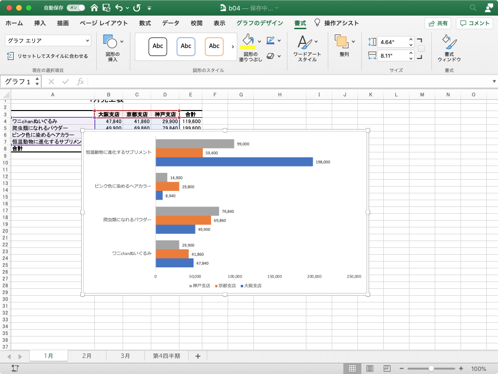- グラフ要素を選択します。グラフ全体をリセットするにはグラフ全体を選択します。