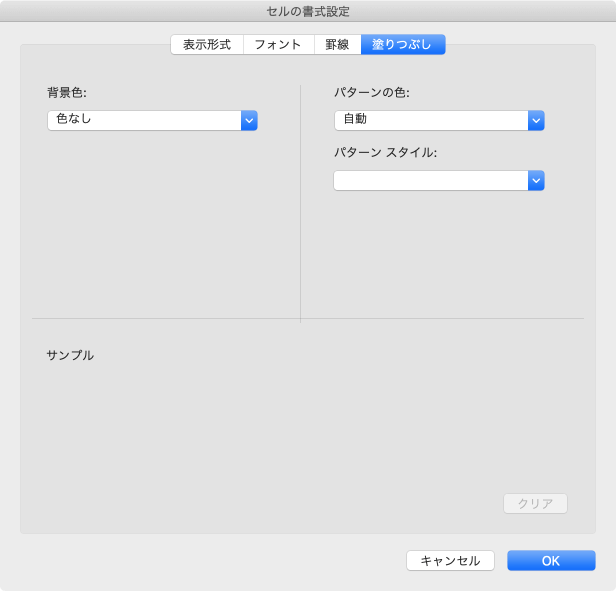 - [塗りつぶし]タブを開き、[背景色]を「色なし」にして[OK]ボタンをクリックします。