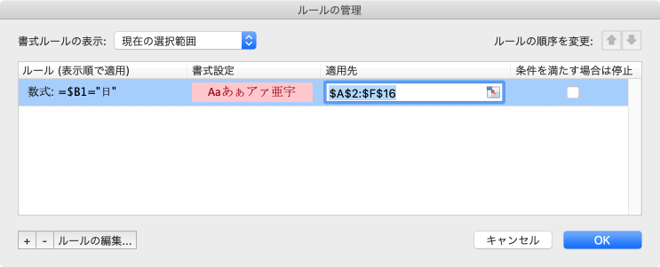 既存のルールの書式を削除する