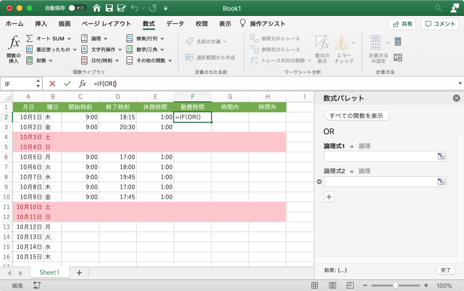 - 数式パレットがOR関数に変わりました。
