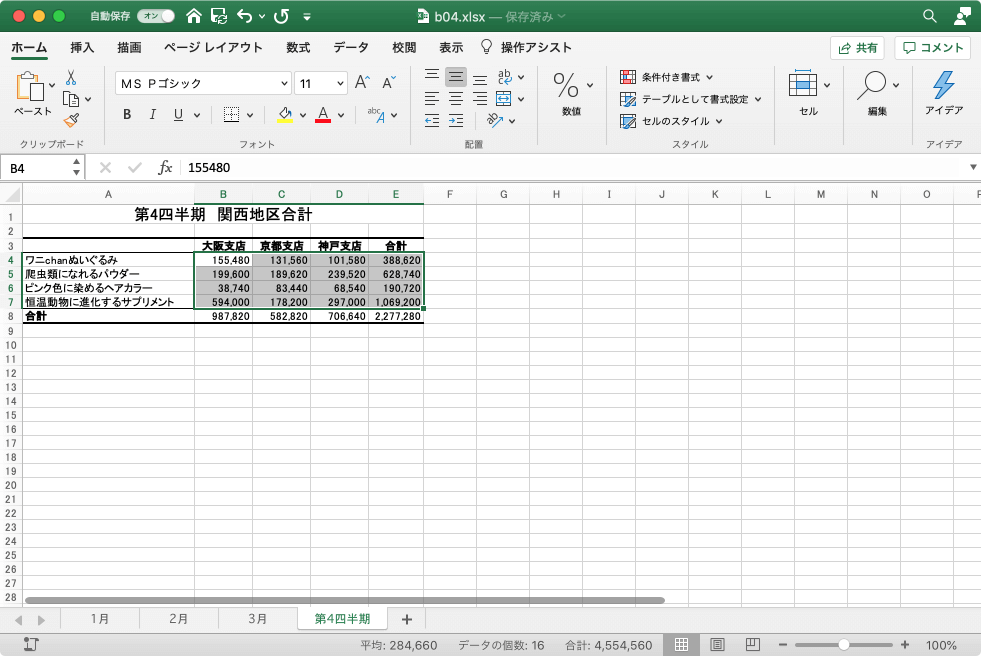 - 位置を基準にした統合を使ってそれぞれ合計が求められました。
