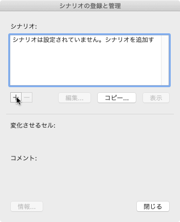 - [シナリオの登録と管理]ダイアログボックスの[+]ボタンをクリックします。