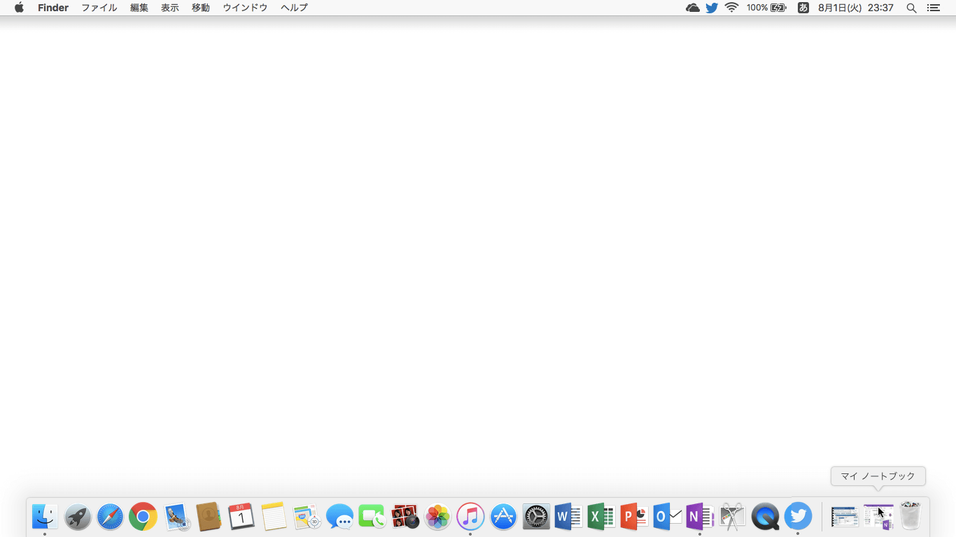 - ウィンドウが最小化され、Dockに格納されました。元に戻すにはDockに格納されたウィンドウをクリックするとOKです。