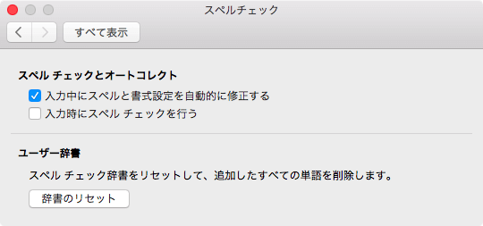 - [入力時にスペルチェックを行う]のチェックを外します。