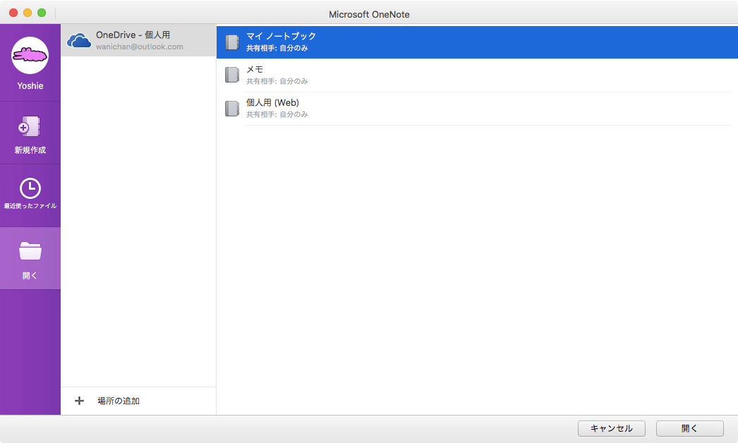 - 一覧から開きたいノートブックを選択して[開く]ボタンをクリックします。