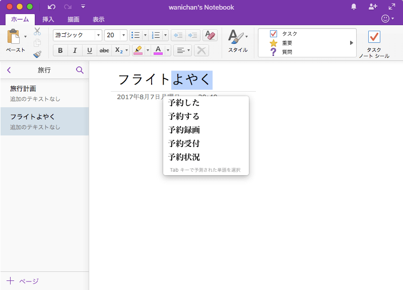 ※執筆環境:Microsoft OneNote for Mac バージョン 15.36