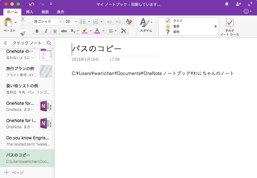 ※執筆環境:Microsoft OneNote for Mac バージョン 15.37