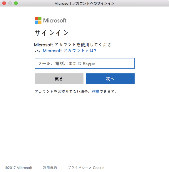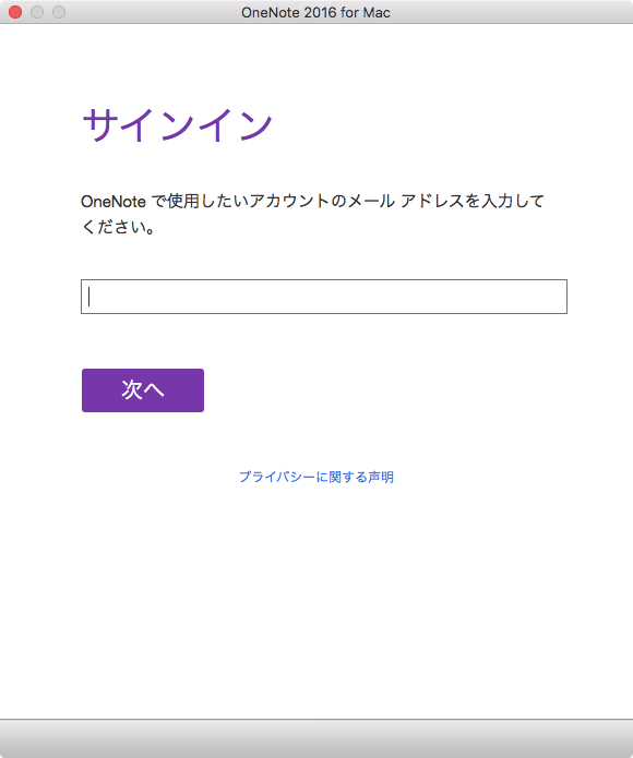 - サインインウィンドウが表示されたら、電子メールアドレスを入力します。