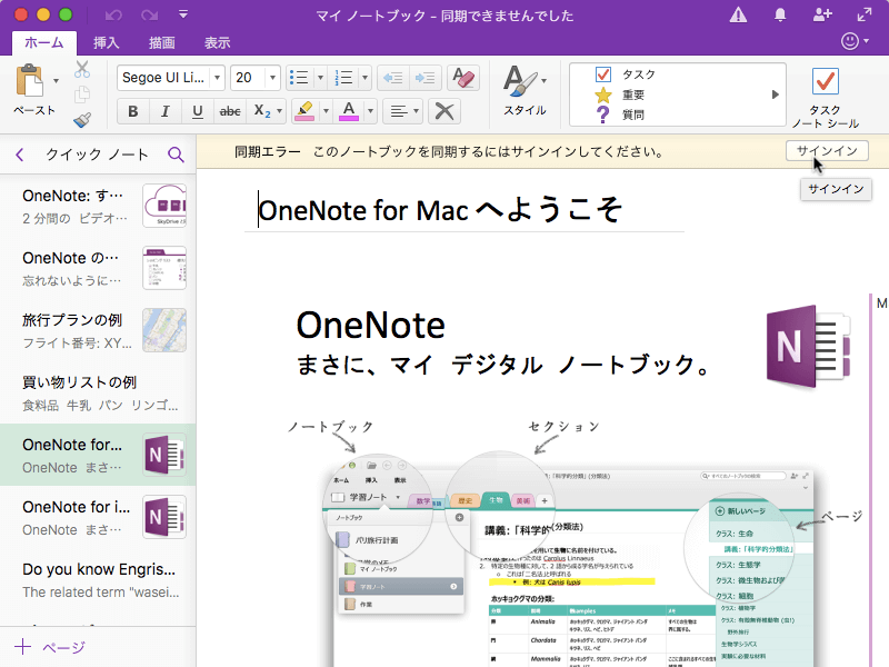※執筆環境:Microsoft OneNote for Mac バージョン 15.36