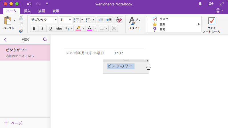 ※執筆環境:Microsoft OneNote for Mac バージョン 15.37