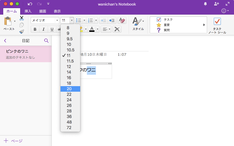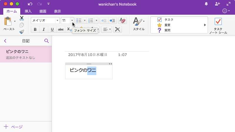 ※執筆環境:Microsoft OneNote for Mac バージョン 15.37