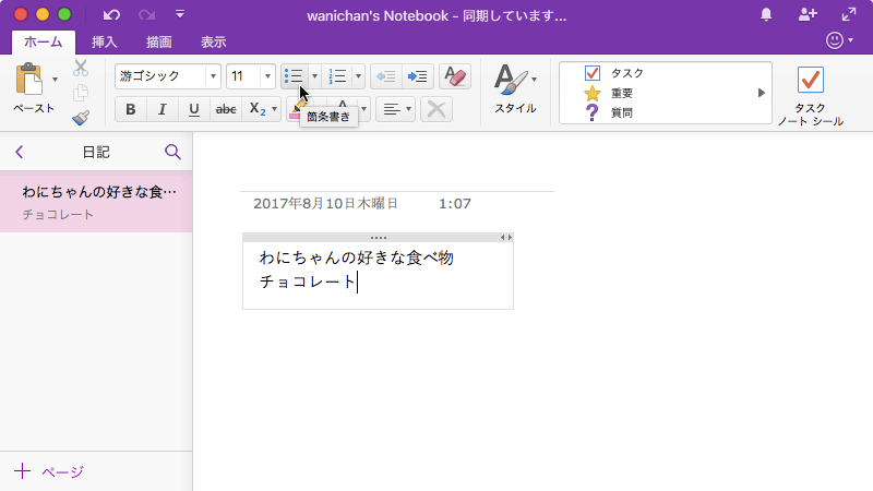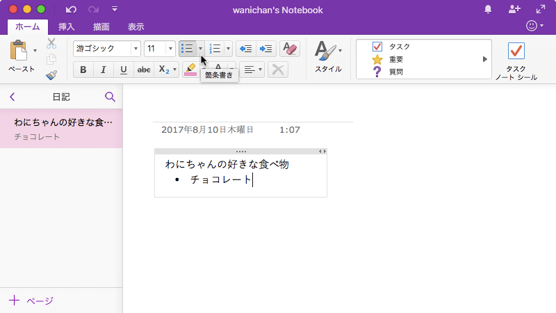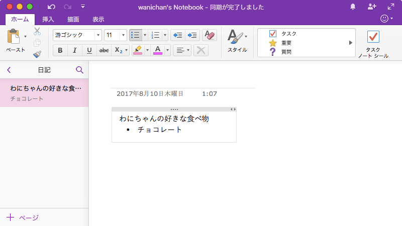 ※執筆環境:Microsoft OneNote for Mac バージョン 15.37