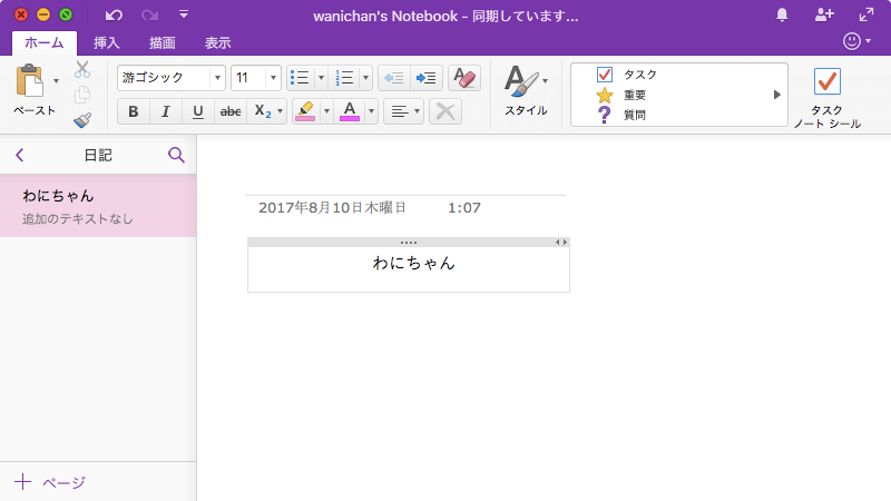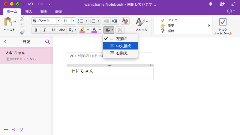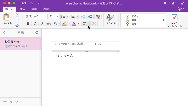※執筆環境:Microsoft OneNote for Mac バージョン 15.37
