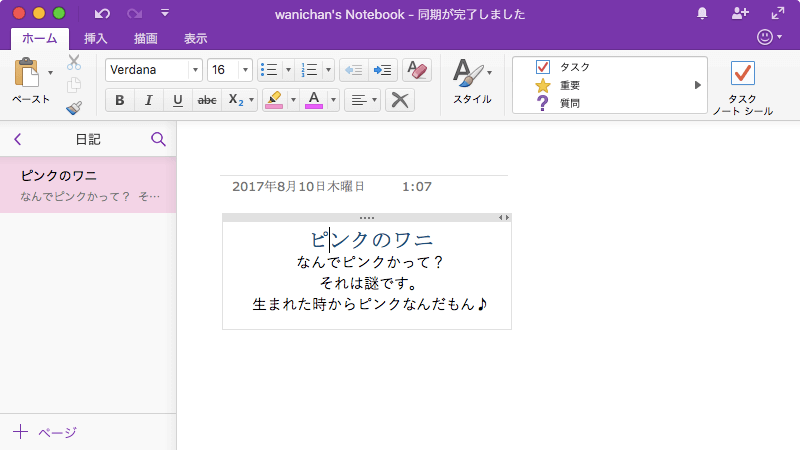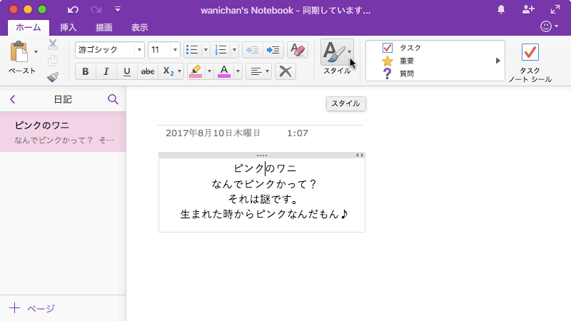 ※執筆環境:Microsoft OneNote for Mac バージョン 15.37