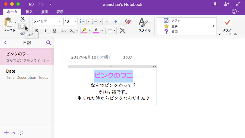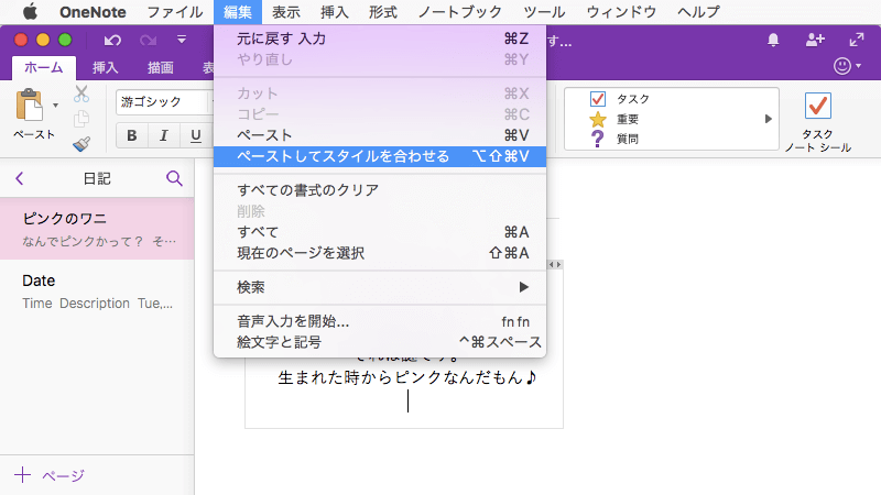 ※執筆環境:Microsoft OneNote for Mac バージョン 15.37