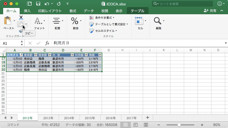 - とりあえず、Excelの表をコピーします。