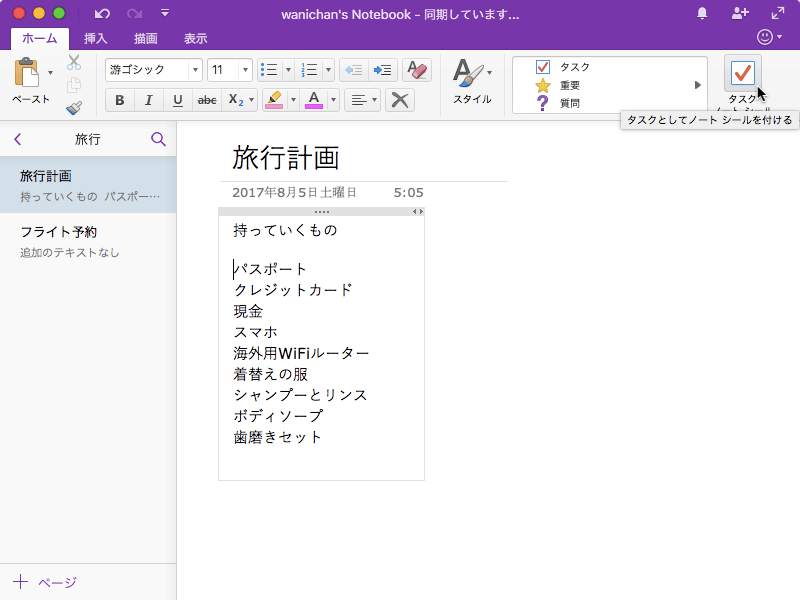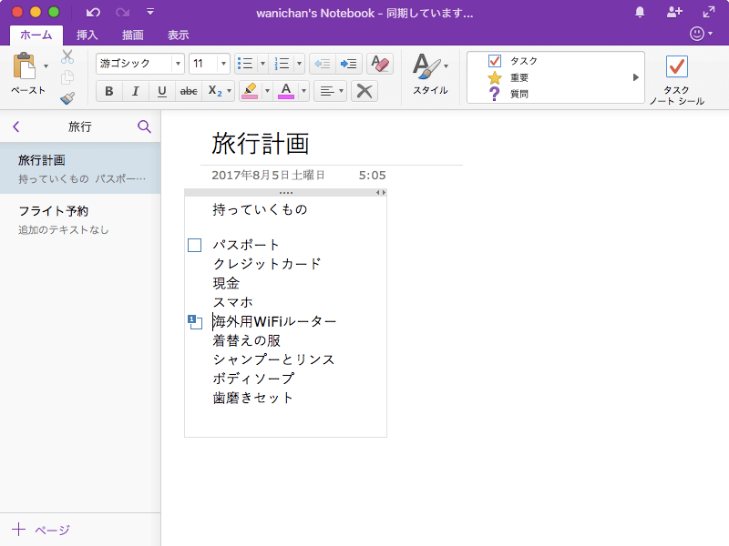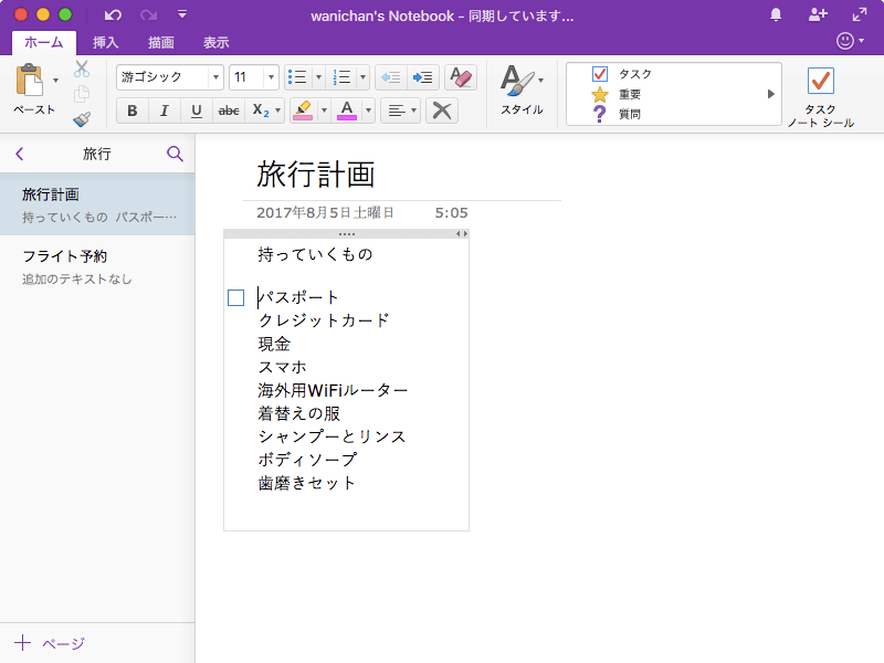 ※執筆環境:Microsoft OneNote for Mac バージョン 15.37