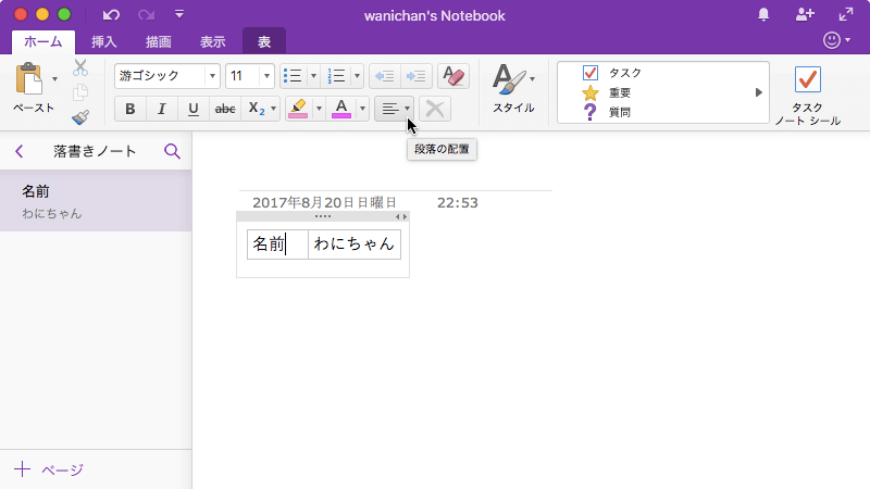 ※執筆環境:Microsoft OneNote for Mac バージョン 15.37