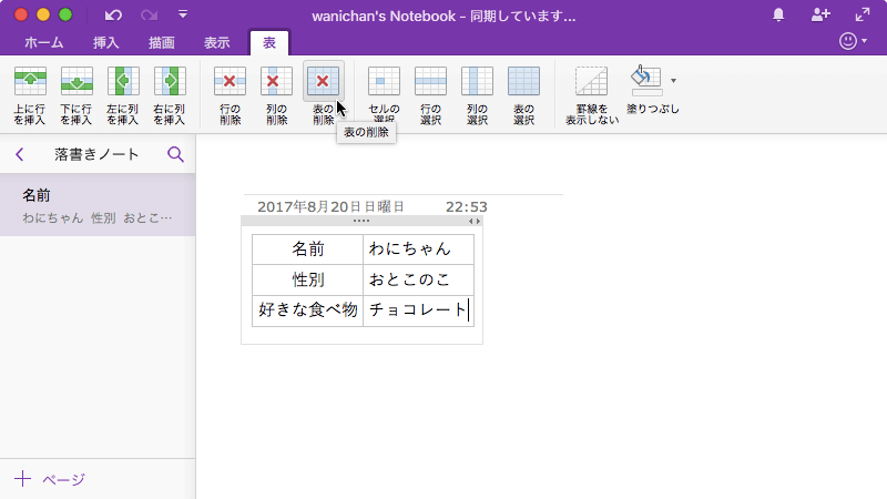 表を削除する