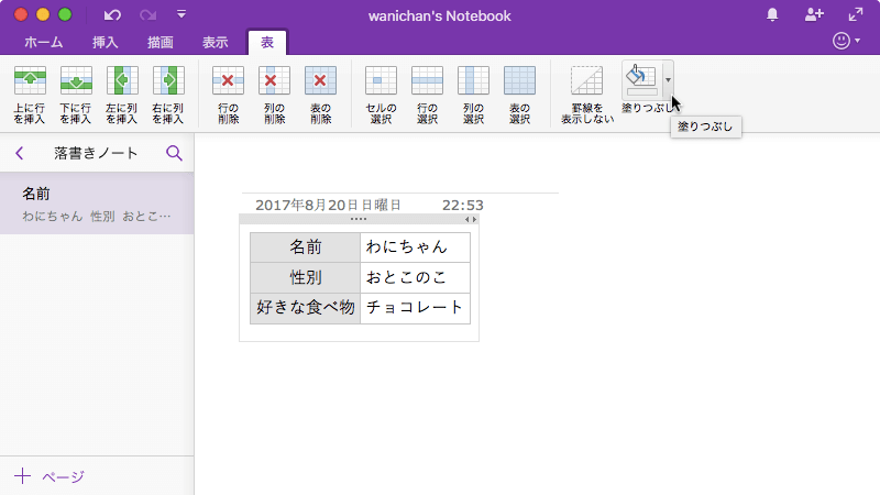 表のセルを塗りつぶすには