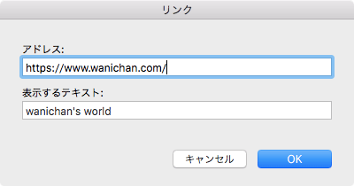 - リンク先のアドレスを入力して[OK]ボタンをクリックします。