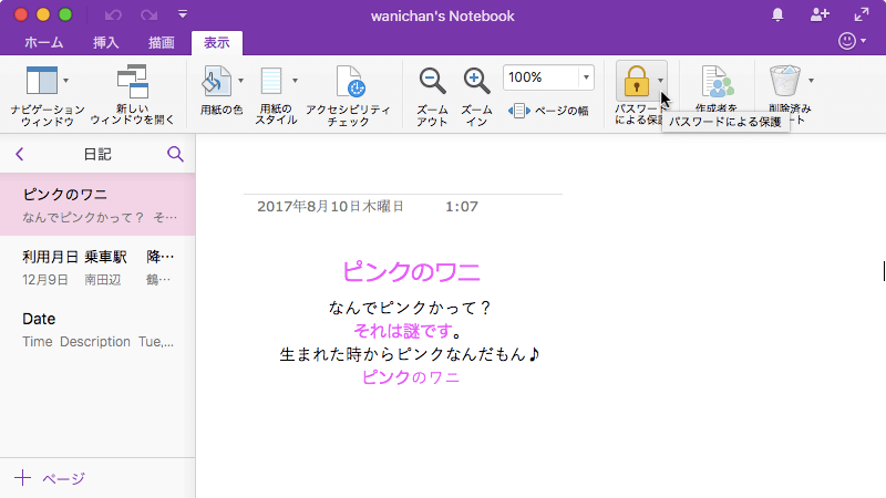 OneNote のパスワードによる保護機能は、他のユーザーに個人的なノートを見られないように安全を保つために用意されています。セクションがパスワードで保護されていると、正しいパスワードを入力しない限り、セクションに含まれているすべてのページがロックされます。個々のノートブック ページまたはノートブック全体をパスワードで保護することはできませんが、ノートブックで保護されたすべてのセクションを一度にまとめて簡単にロックできます。