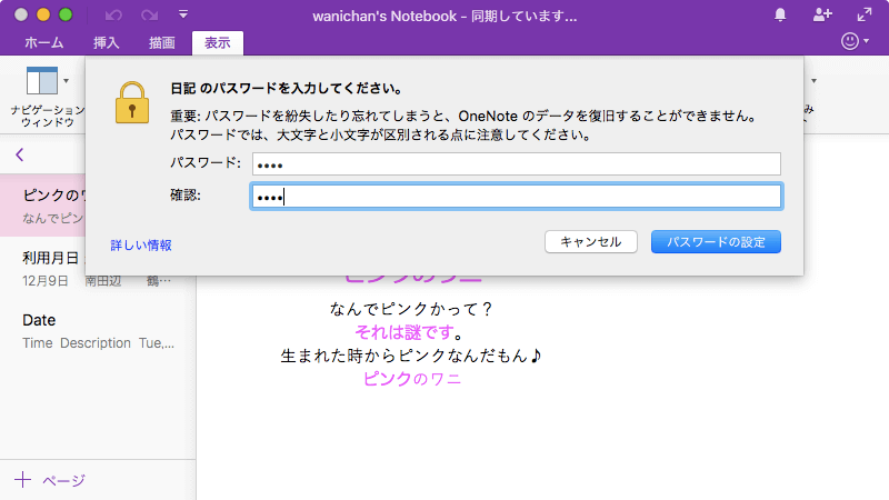 ただし、パスワードを忘れてしまうと、OneNoteのデータを復旧することができません。なお、パスワードの大文字と小文字は区別される点に注意してください。
