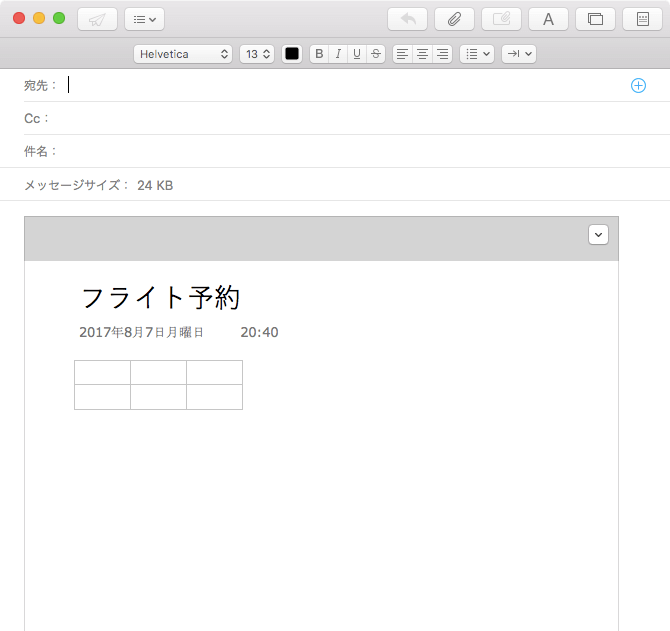 - メールアプリの新規メッセージにPDFに変換されて添付されました。