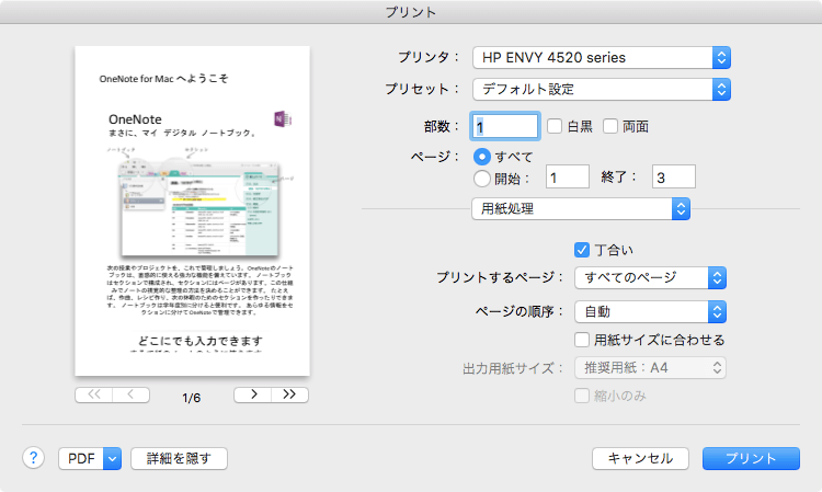 - [ファイル]メニューの[プリント]をクリックするか、Command + P キーを押します。