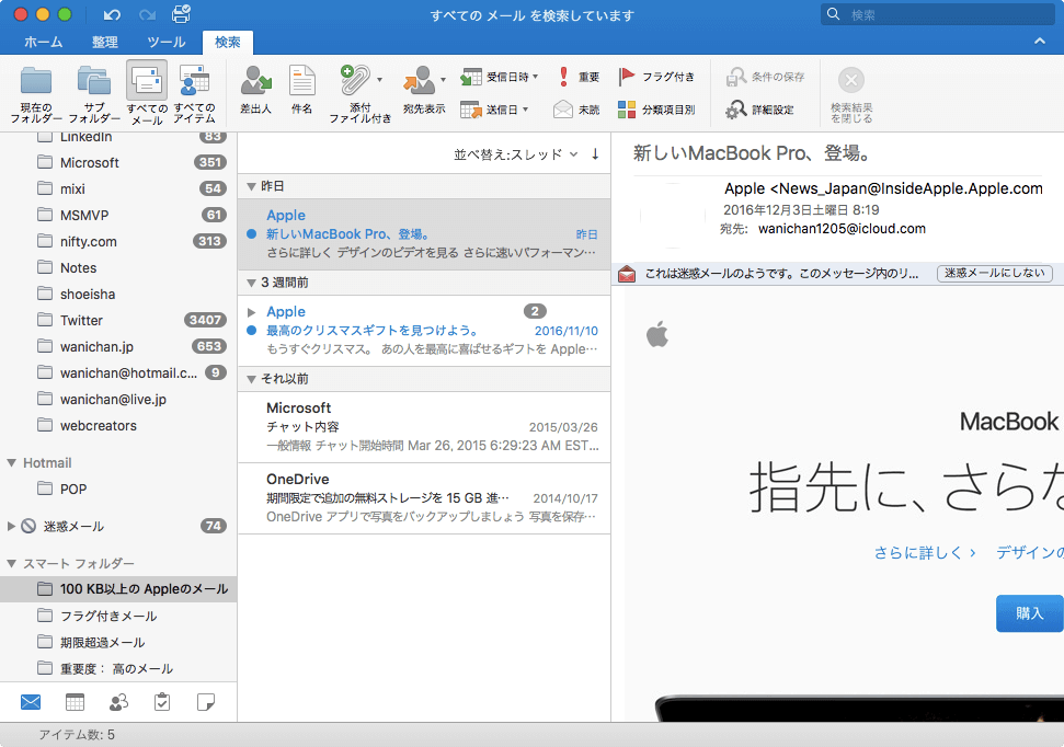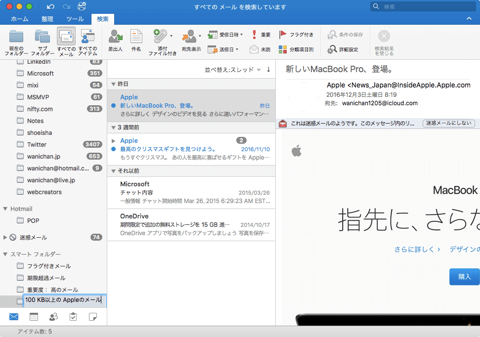 ※執筆環境:Microsoft Outlook for Mac バージョン 15.28.1