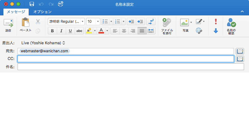 - メッセージウィンドウの[宛先]フィールドから直接電子メールアドレスを入力します。