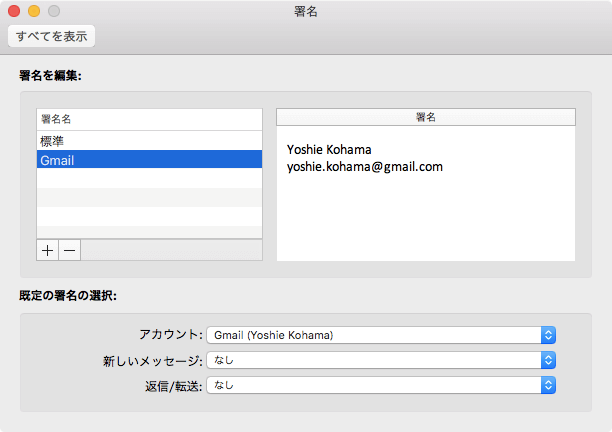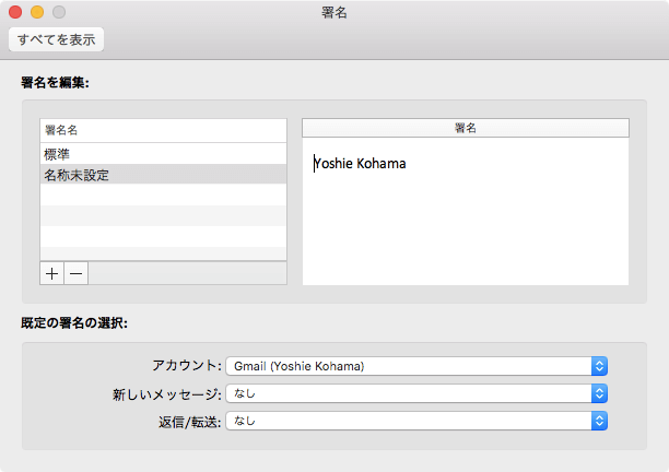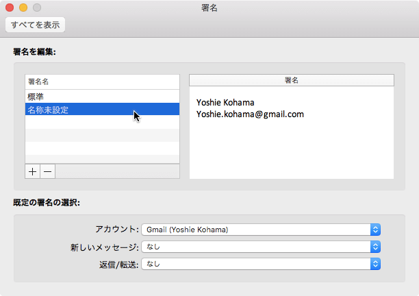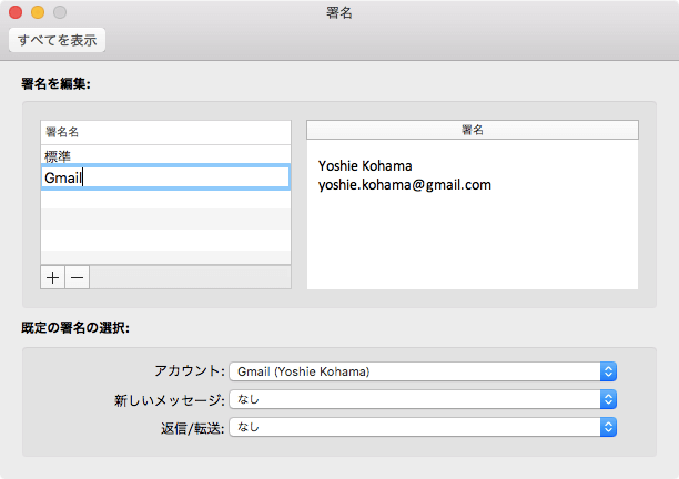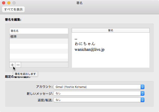 - [署名]ウィンドウの左下の[+]ボタンをクリックします。