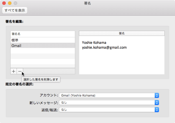 - [署名]ウィンドウの左下の[-]ボタンをクリックします。