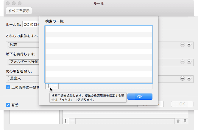 Outlook.comアカウントで複数の条件に該当するメールが複数のフォルダにコピーして振り分けられるのを防ぐために、Outlook 2016 for Macで仕分けルールの例外処理を設定するには、[ルール]ウィンドウの[以下の場合を除く]をクリックして、条件を設定します。ただし、IMAPやPOPアカウントの場合は、例外処理は条件に追加設定する必要があります。